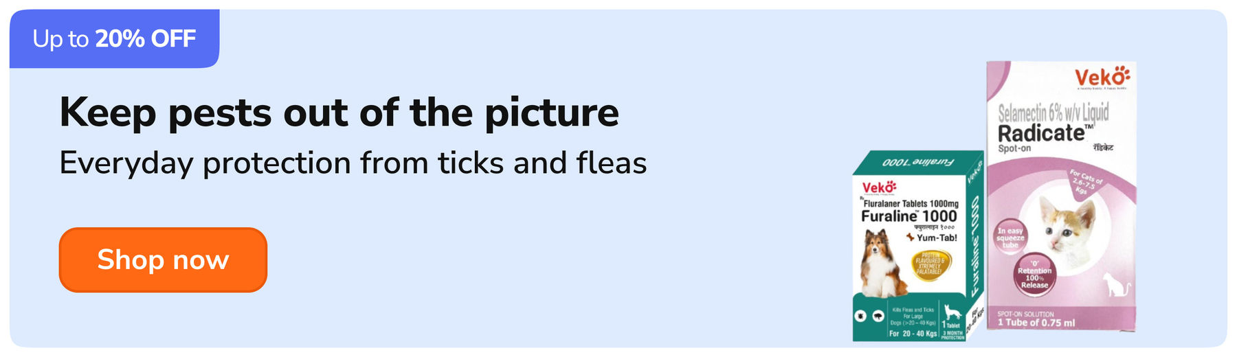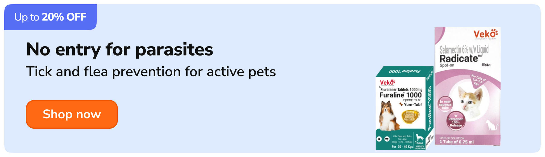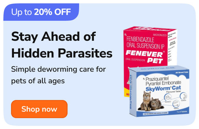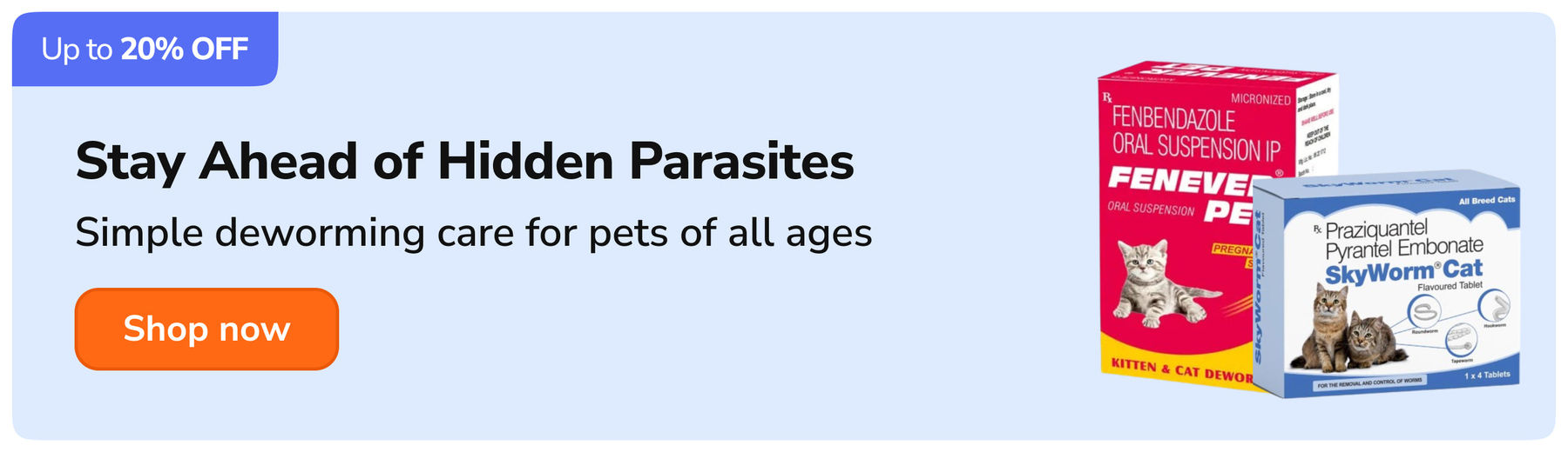 Supertails stocks a wide variety of pet products such as dog food, cat food, treats, grooming supplies, accessories, and health supplements. Their online pet pharmacy provides authentic medicines, including deworming medicine for cats, worming tablets, and other health essentials to keep pets healthy and happy.