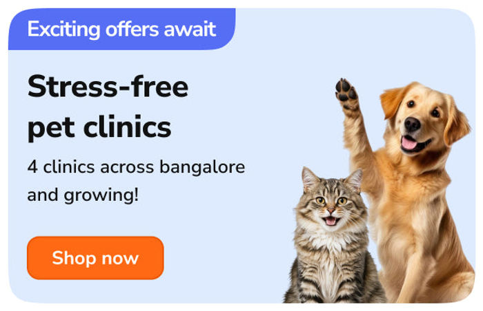 - Complete Range Beyond a Pet Store – We're more than just a pet store; we stock everything from specialised prescription diets to playful interactive toys and comfy beds. Plus, we have pet clinics in Bangalore, or you can also book at-home services right at your doorstep.