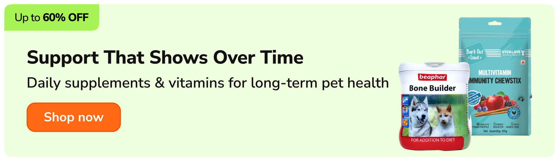 Ready to upgrade your pet’s life? Whether you’re looking for a specific supplement or just browsing for the latest toy, Supertails makes it easy. Happy tails, hassle-free trails! Browse our extensive pet supply store and experience the joy of online pet shopping with the best expertise in India. Download the Supertails App today to get expert-backed pet care, easy ordering, and personalised recommendations, all in one place.