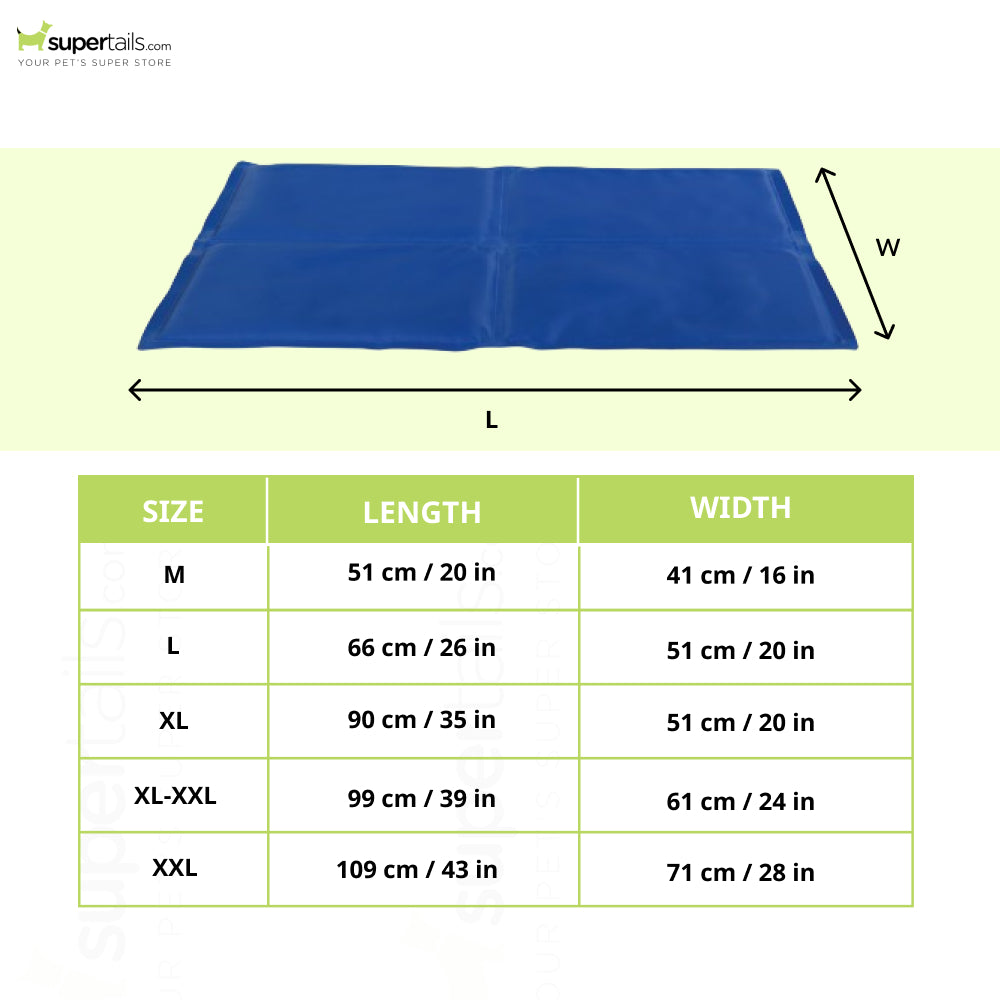 Pet Cooling Mat Supports regulation of body temperature on warm days for pets. This Cooling Mat has Nylon look (polyester) with the Cooling effect through body contact. Pet Cooling Mat works without additional cooling, electricity, or water. Cooling mat remains cool for several hours. It is ready to be used again after a short interruption. This Cooling Mat can also be used on pet beds, in dog kennels or in the car. Cooling mat gets easily cleaned with simply a wipe.