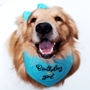 Dogobow Birthday Girl Scarf for Dogs (Teal blue) (Get a Bow Free)