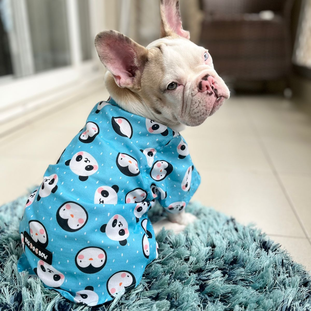 Dogobow Panda Print Shirt for Dogs (Blue/White)
