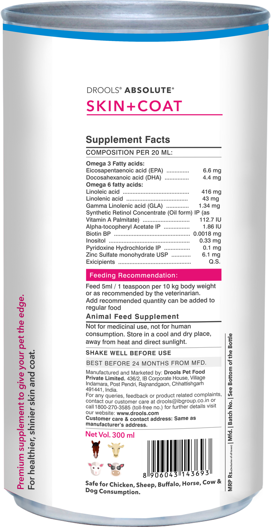 Drools Absolute Skin & Coat Syrup Supplement for Dogs