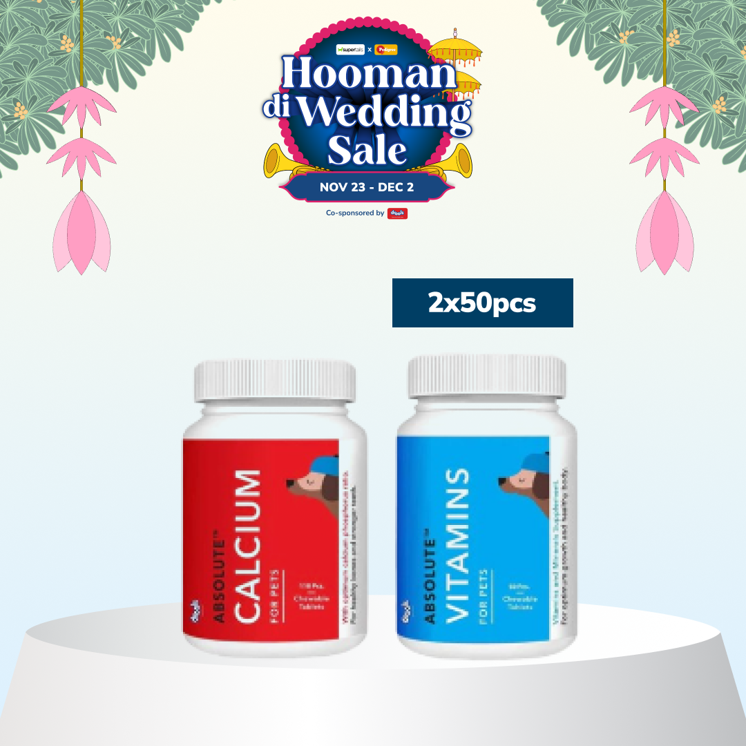 Drools Absolute Vitamin and Absolute Calcium Supplement Tablets for Dogs Combo