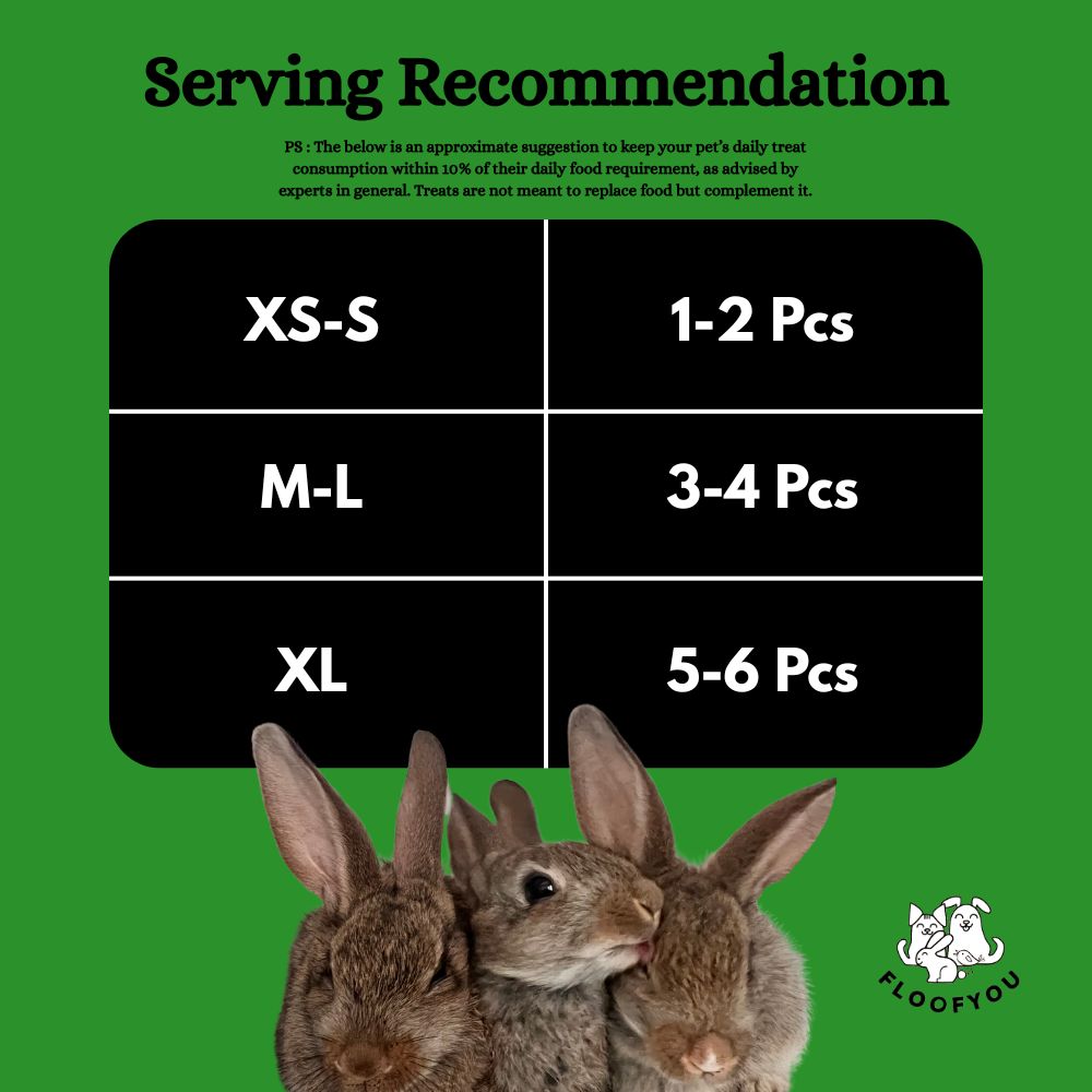 The above is an approximate suggestion to keep your pet’s daily treat consumption within 10% of their daily food requirement, as advised by experts in general. Treats are not meant to replace food but complement it.