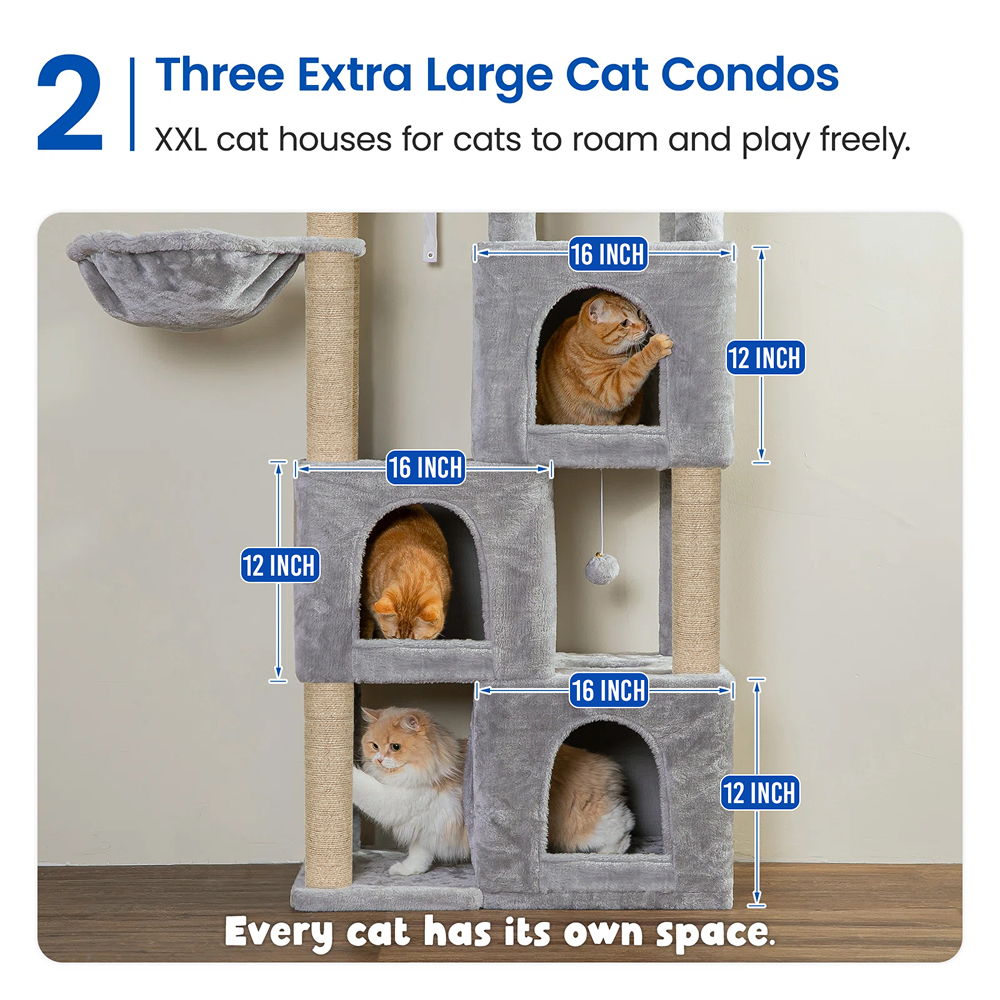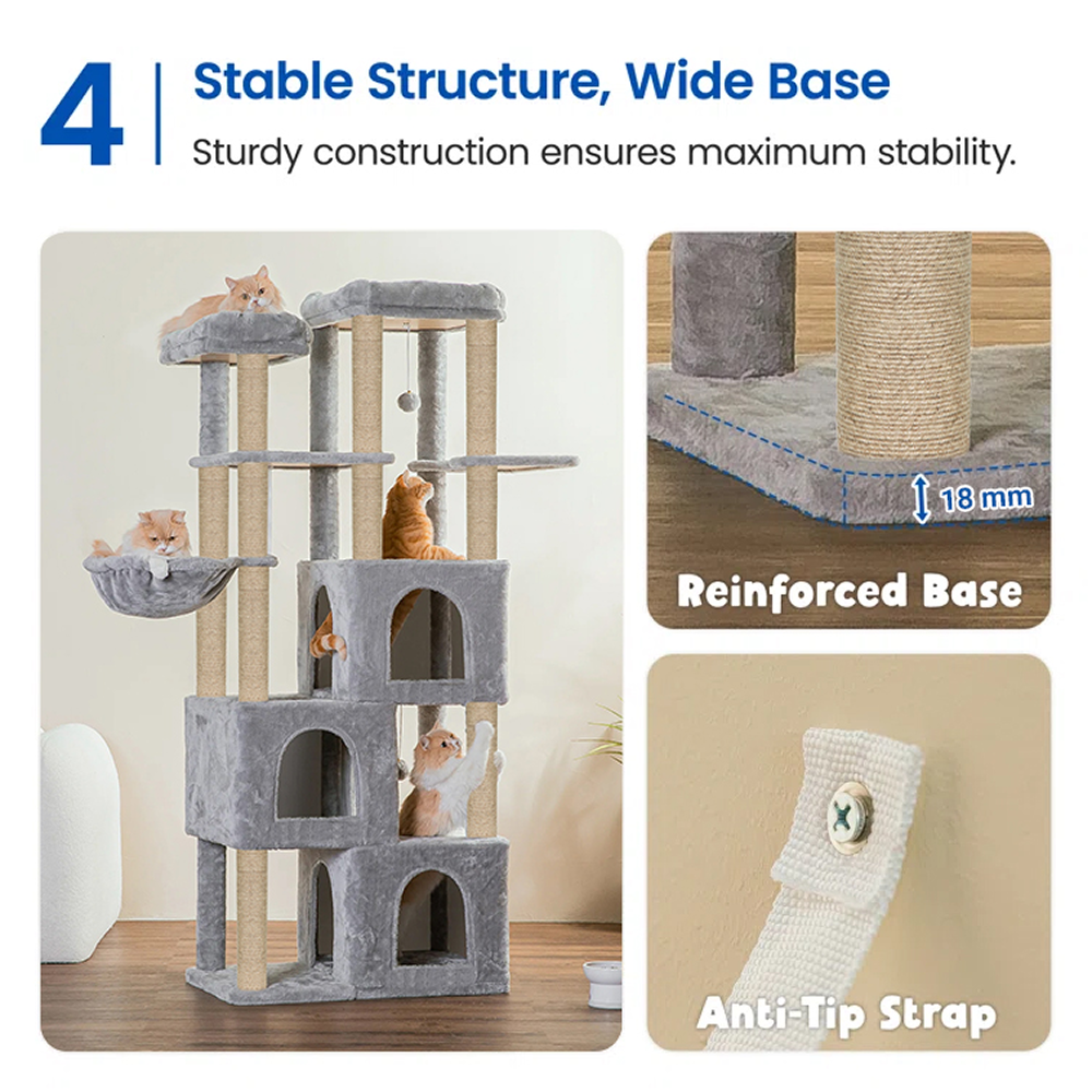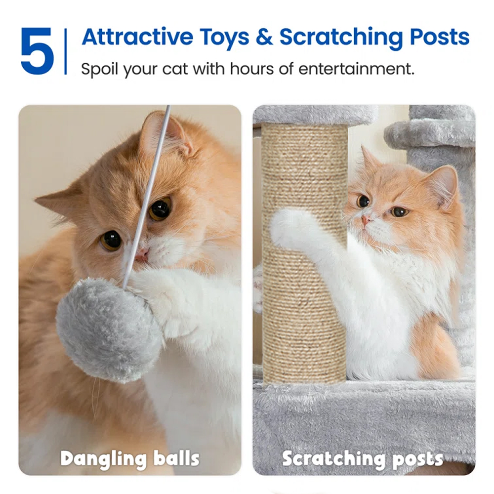 Furrlovers Multilevel Fur Fabric Cat Tree with Condos, Hanging Ball & Jute Rope Scratching Posts (Grey)