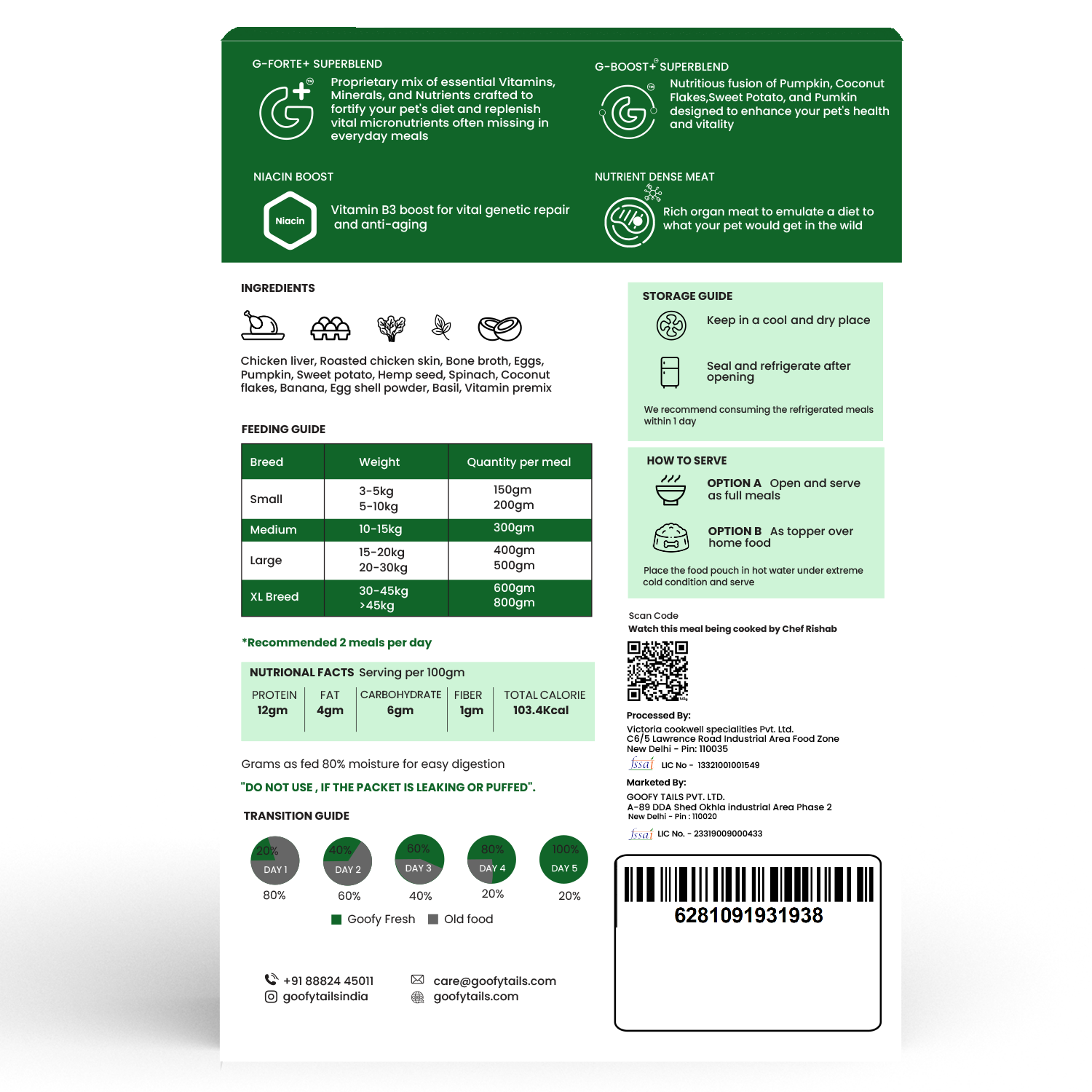 Goofy Tails Chicken and Herbs Grain Free Dogs and Puppies Fresh Food