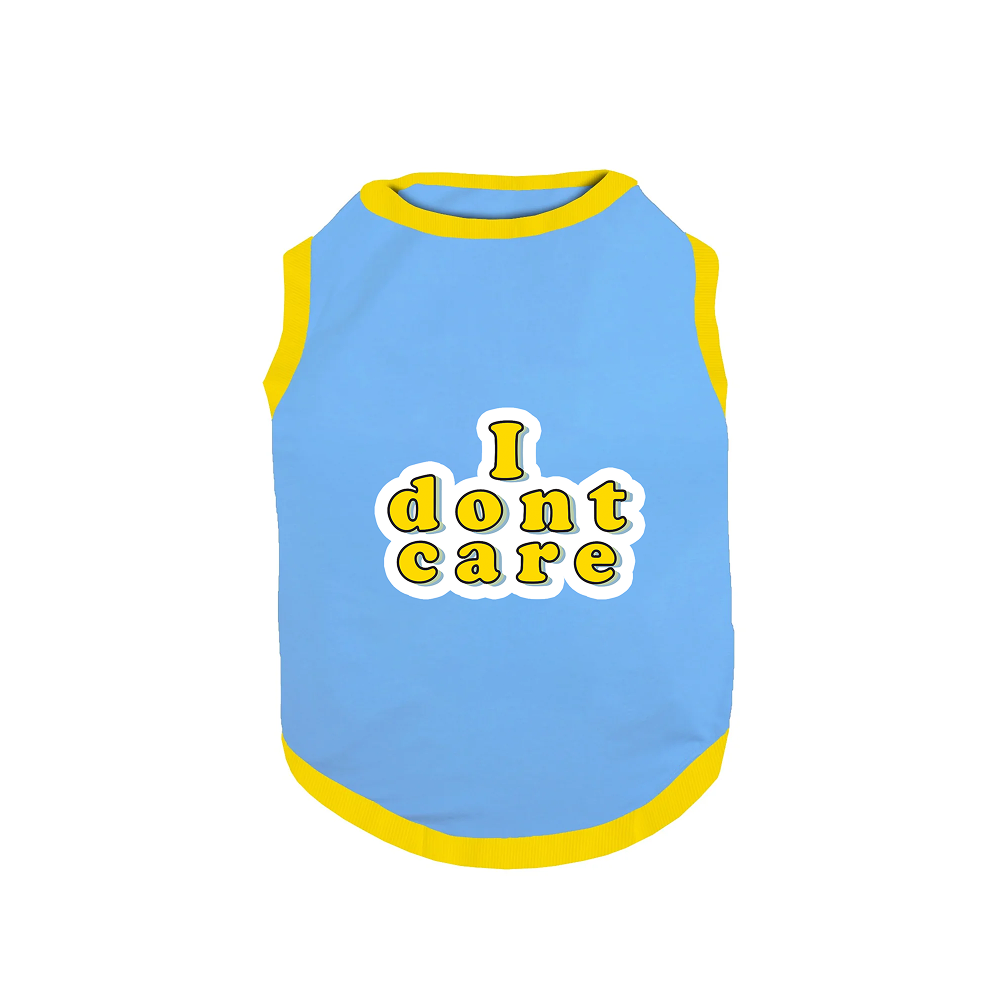 PawsIndia I Don't Care Printed with Ribbed Sleeves TShirt for Dogs (Blue)