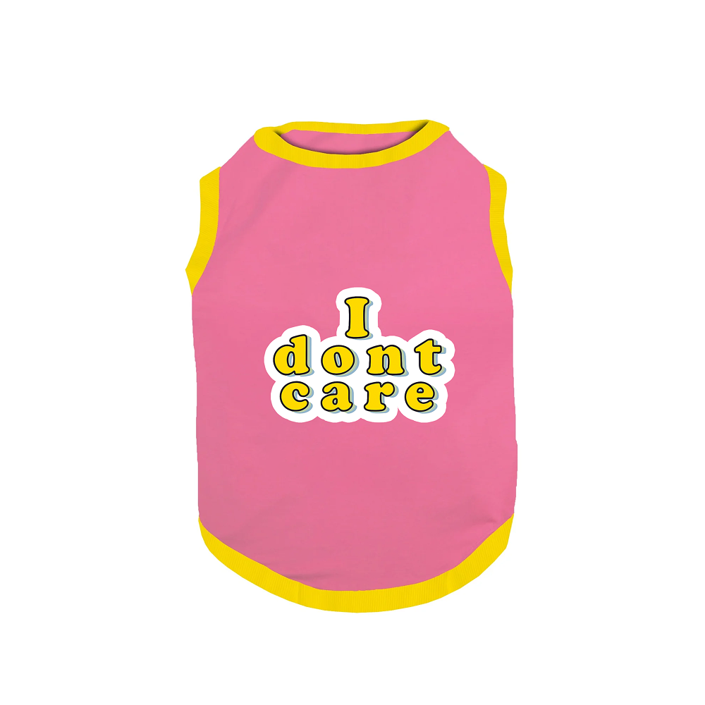 PawsIndia I Don't Care Printed with Ribbed Sleeves TShirt for Dogs (Pink)