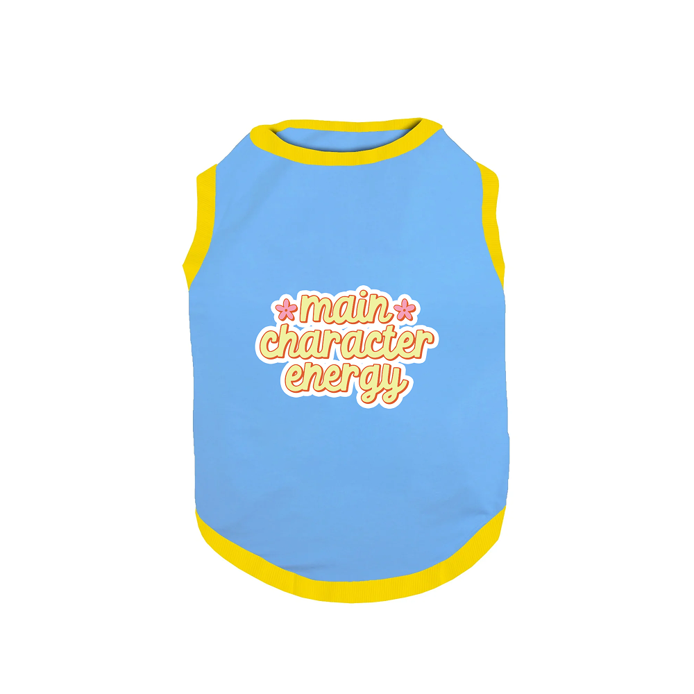PawsIndia Main Character Energy Printed with Ribbed Sleeves TShirt for Dogs (Blue)