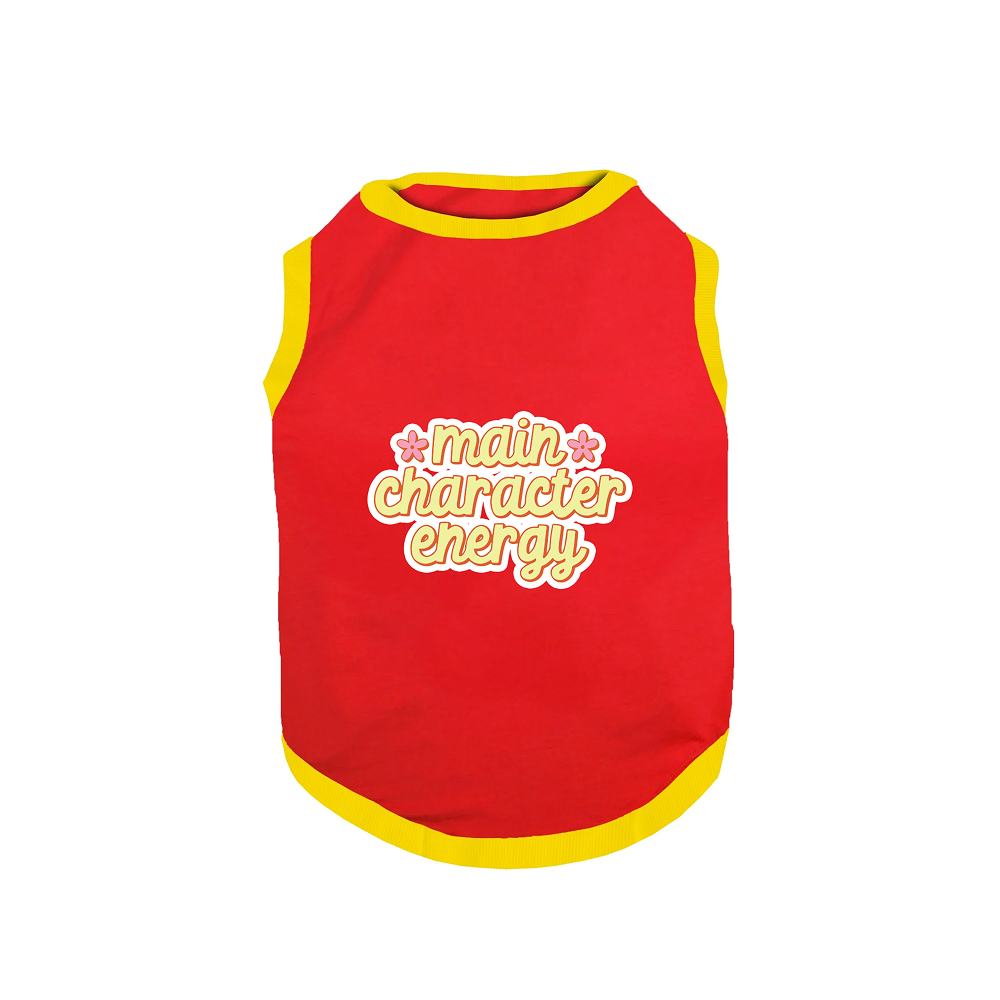 PawsIndia Main Character Energy Printed with Ribbed Sleeves TShirt for Dogs (Red)