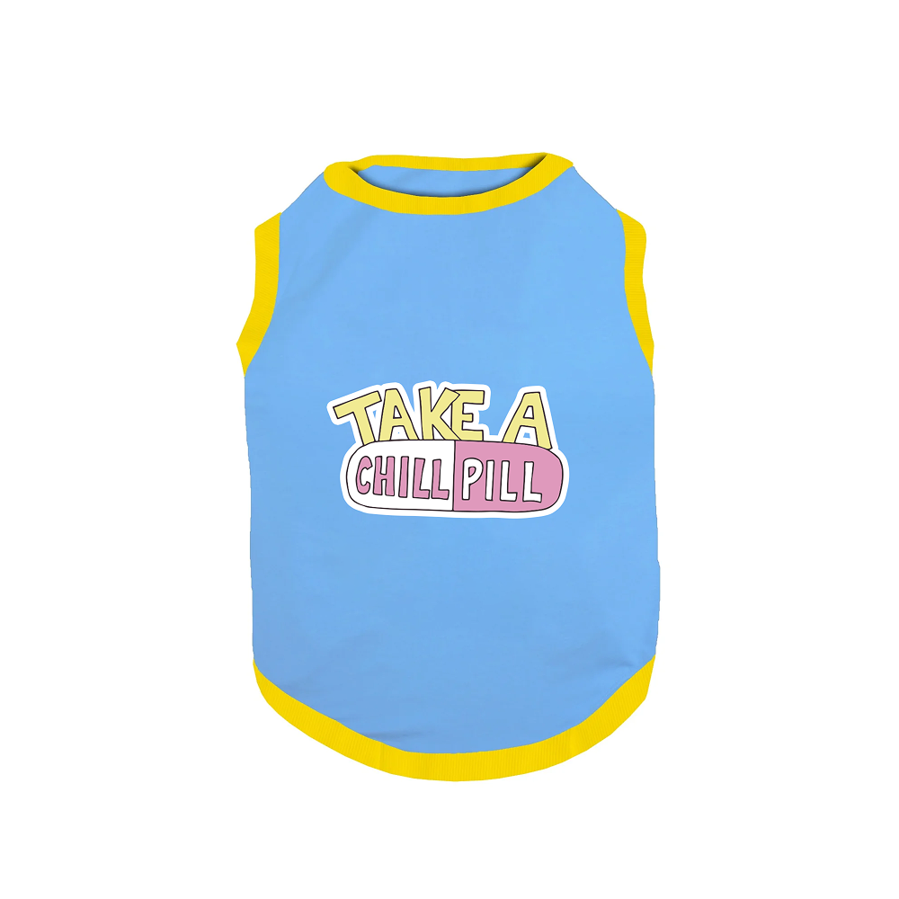 PawsIndia Take A Chill Pill Printed with Ribbed Sleeves TShirt for Dogs (Blue)