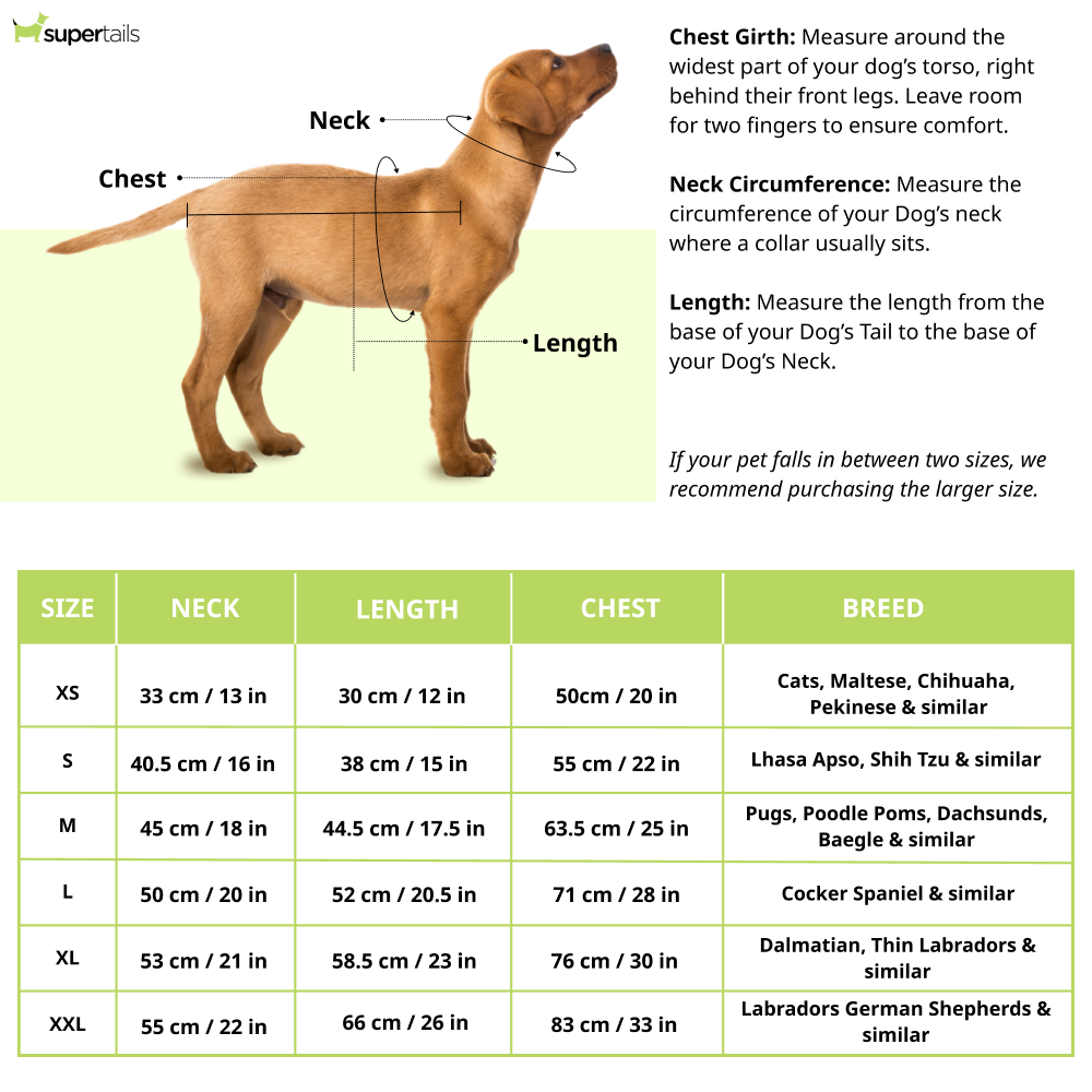 | XS | 33 cm / 13 in | 51 cm / 20 in | 30 cm / 12 in |