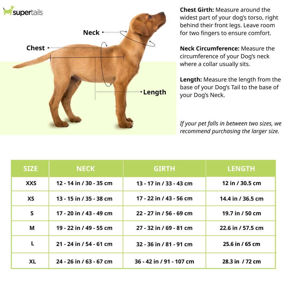 | XXS | 11 - 12 in / 28 - 33 cm |