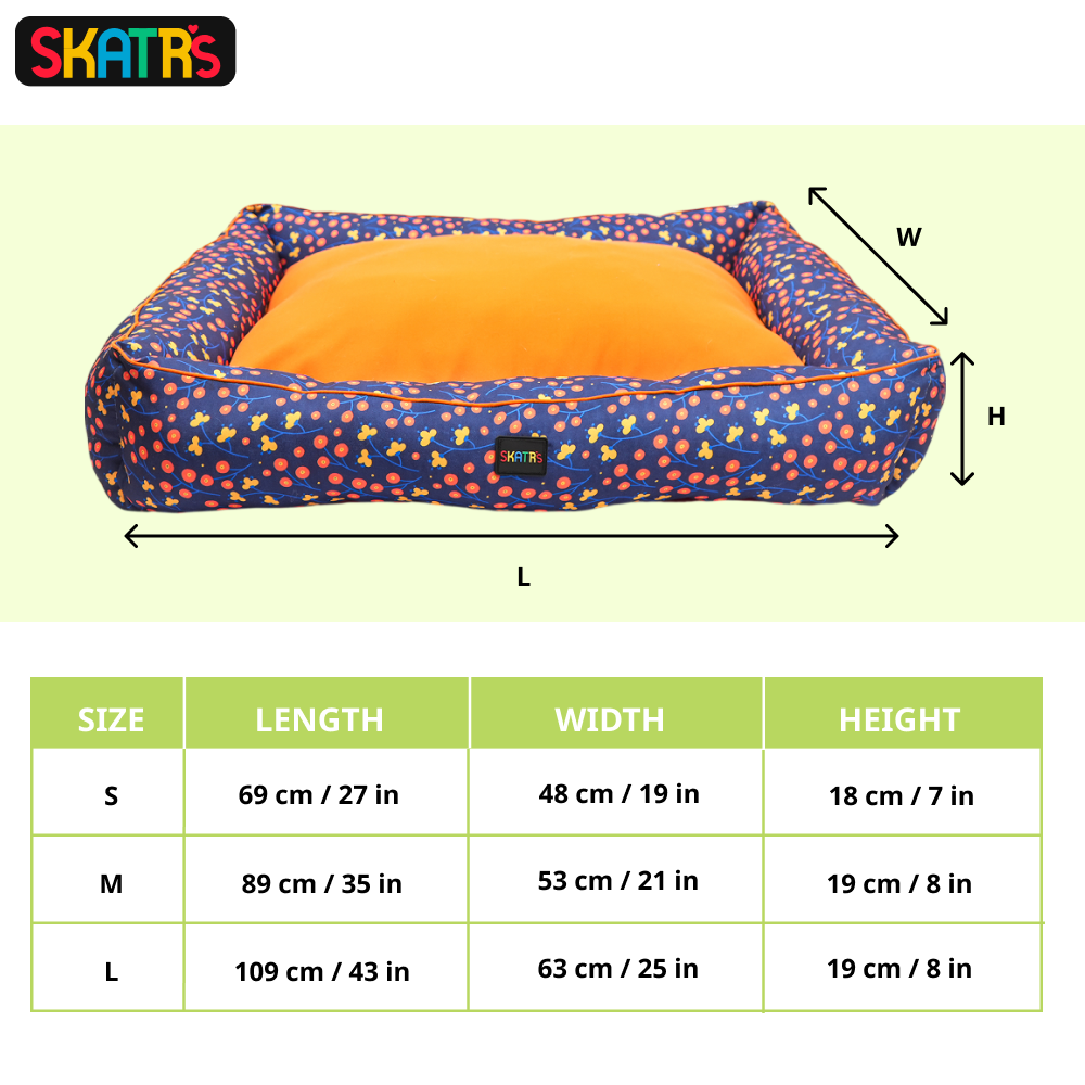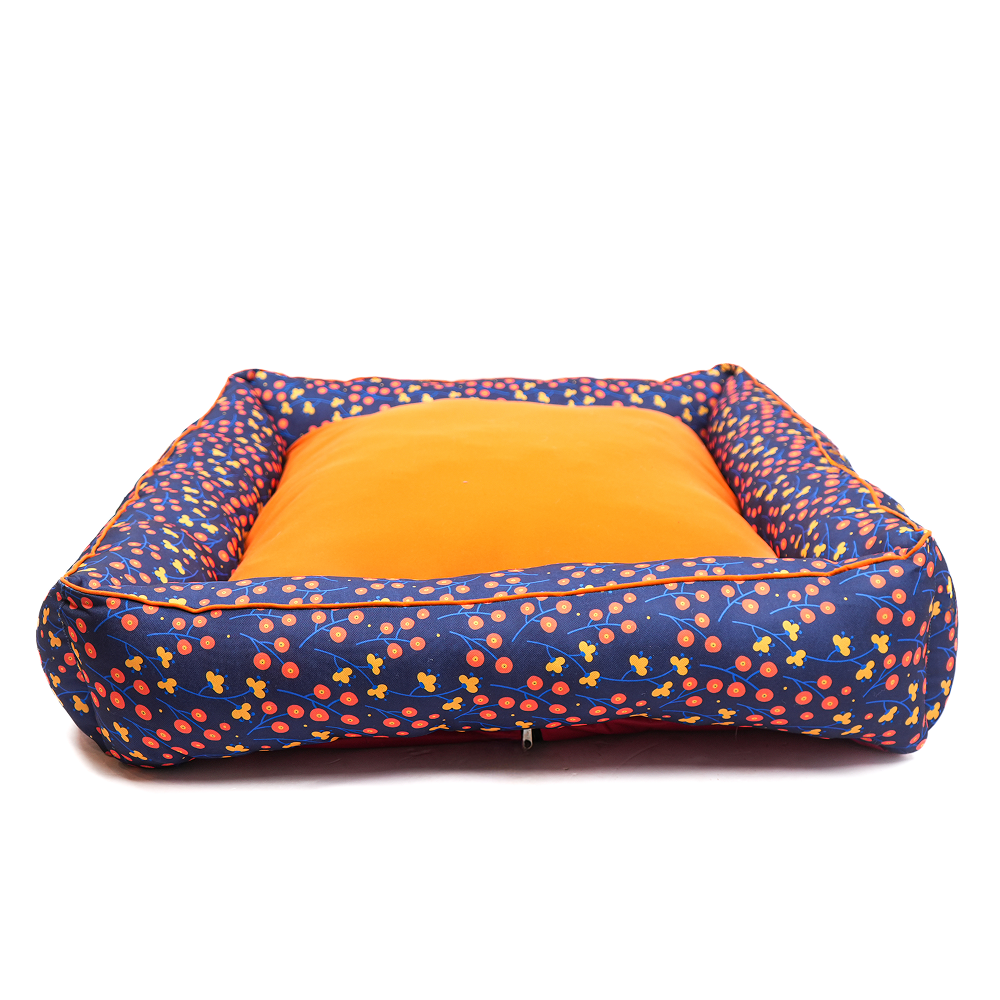 Skatrs Floral Bed for Dogs & Cats (Blue/Orange)
