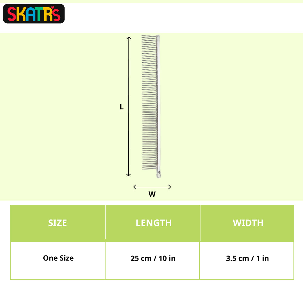 Introducing the SKATRS Steel Comb without Handle, the perfect grooming accessory for your pets. Made from durable stainless steel, this comb features both fine and coarse teeth to effectively remove tangles and mats from your pet's fur. Its compact size and ergonomic design make it easy to use, while smooth edges ensure a comfortable grooming experience.