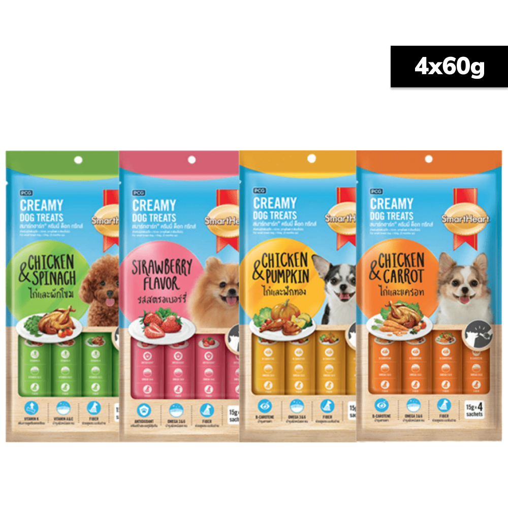SmartHeart Chicken & Carrot, Chicken & Pumpkin, Chicken & Spinach and Chicken & Strawberry Dog Creamy Treat Combo