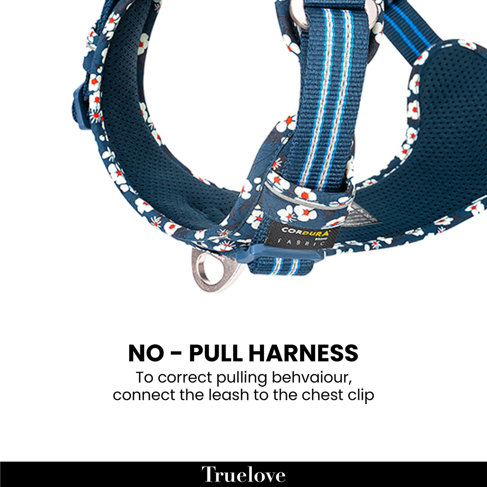 Truelove Floral No Pull Cordura Fabric Harness for Dogs (Saxony Blue)
