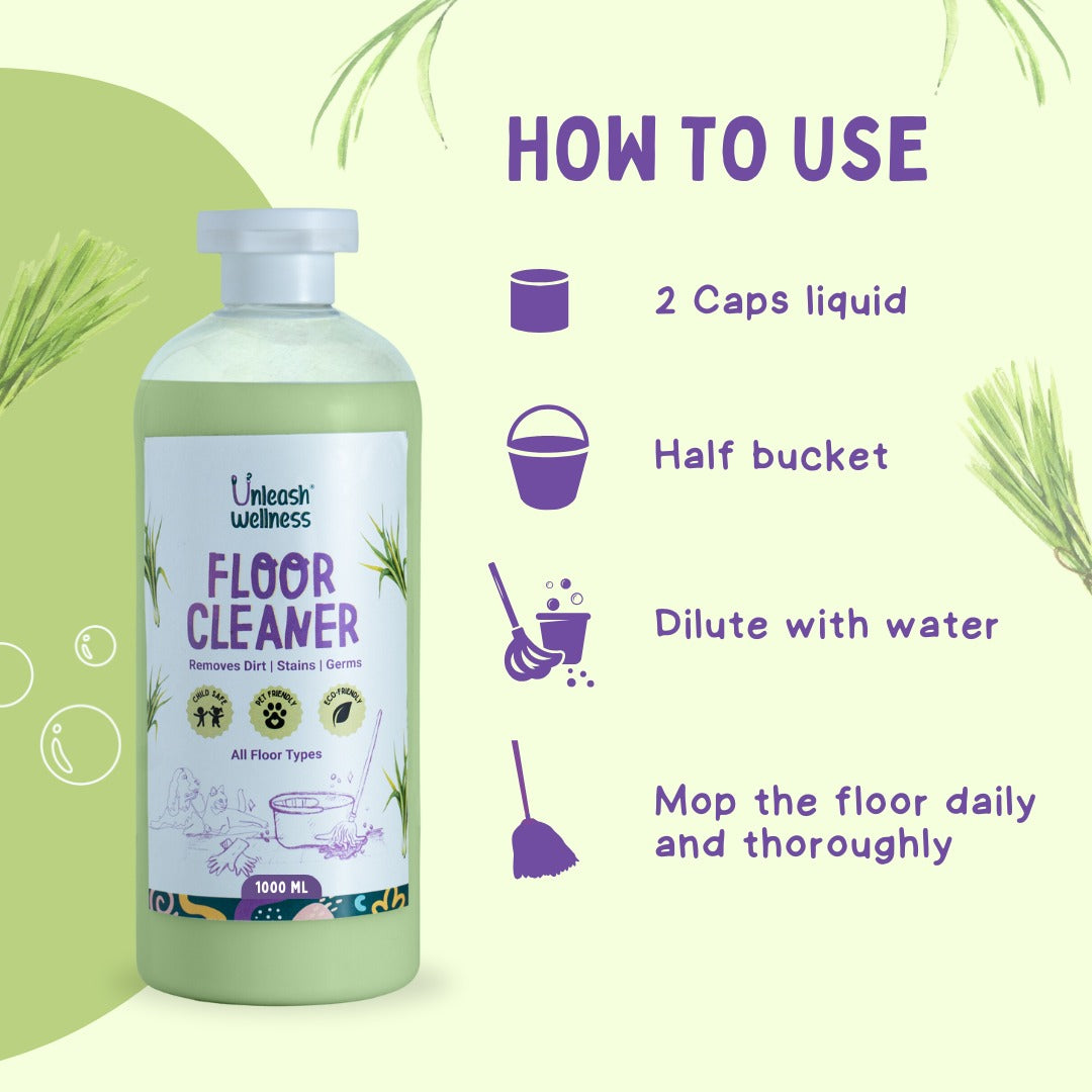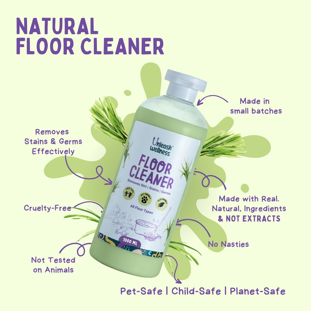 Pet Safe Floor Cleaner, This natural floor cleaner effectively tackles dirt and grime while being gentle on all floor types. Infused with camphor and lemongrass, it leaves a mild, calming scent and ensures a safe environment for pets and kids.