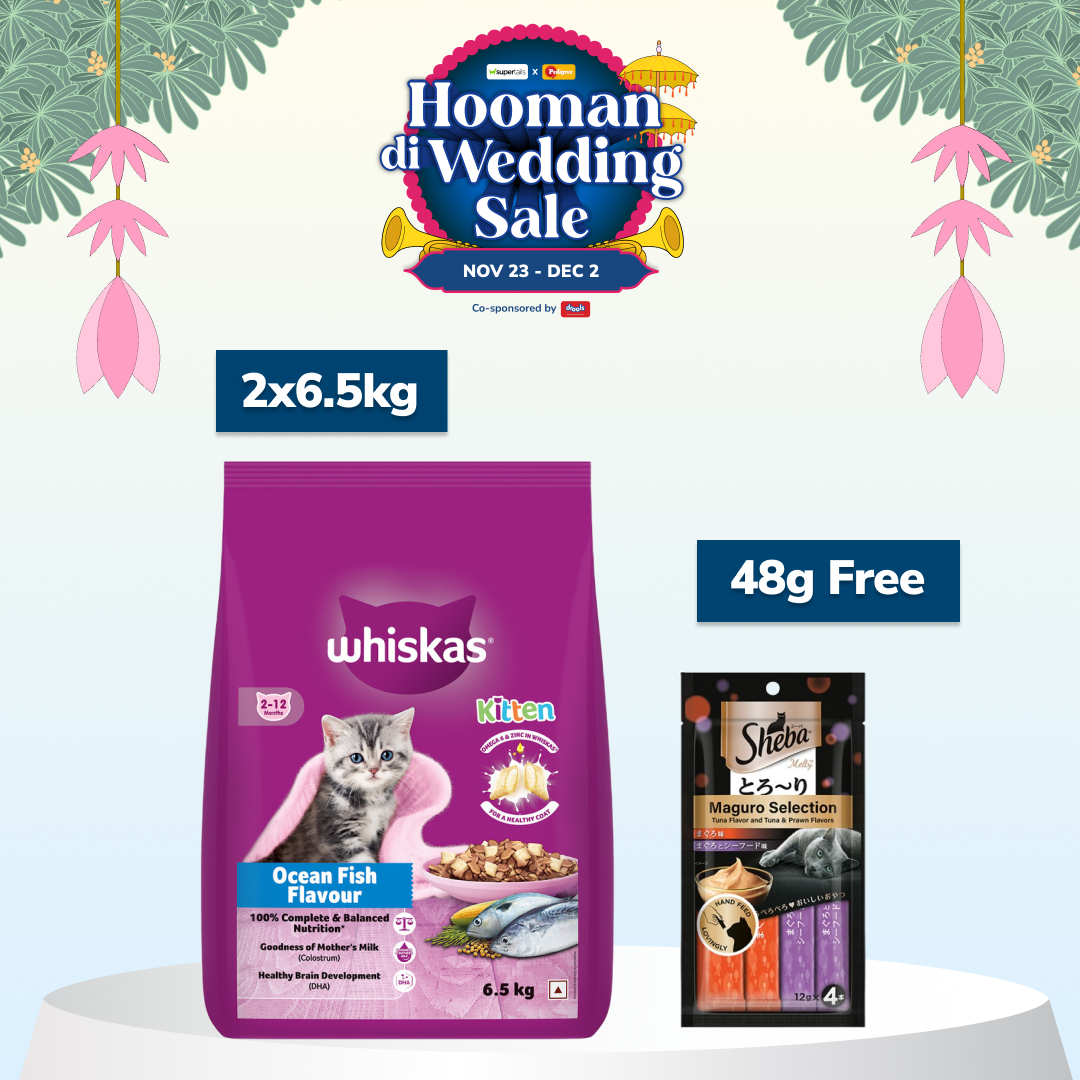 Delicious Ocean Fish Flavor: Whiskas Kitten Dry Cat Food delights your feline friend with nourishing crunchy chunks infused with the irresistible taste of ocean fish.