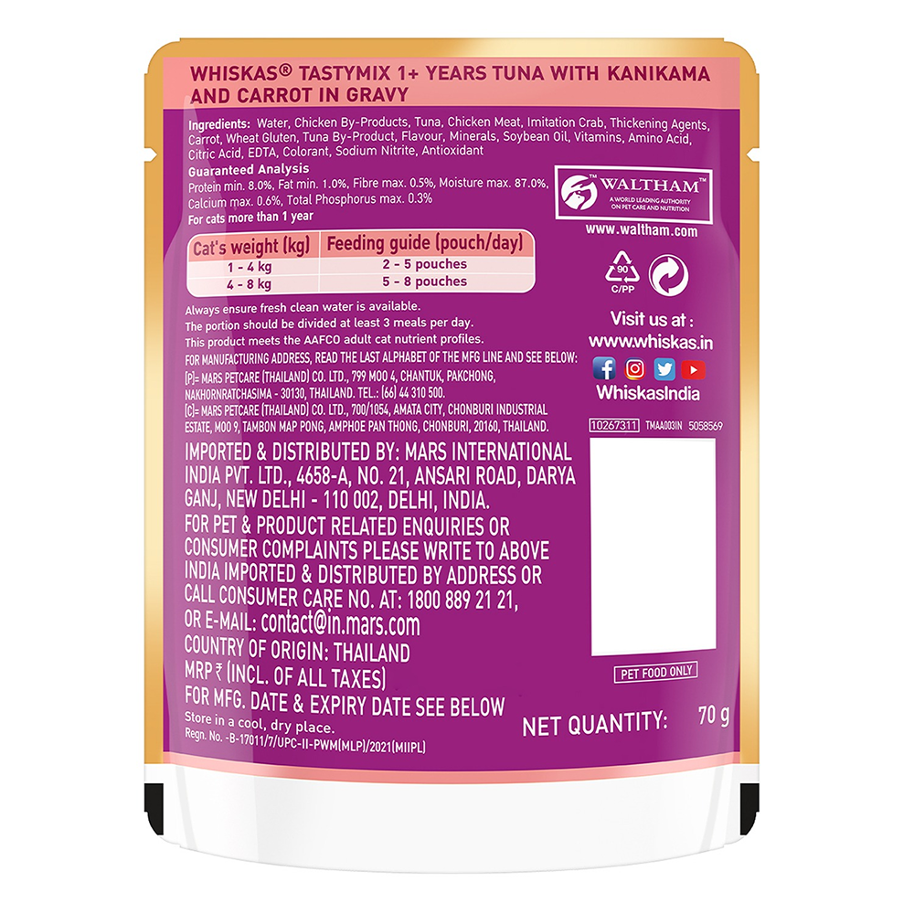 Whiskas Tuna with Kanikama And Carrot in Gravy Tasty Mix Adult Cat Wet Food