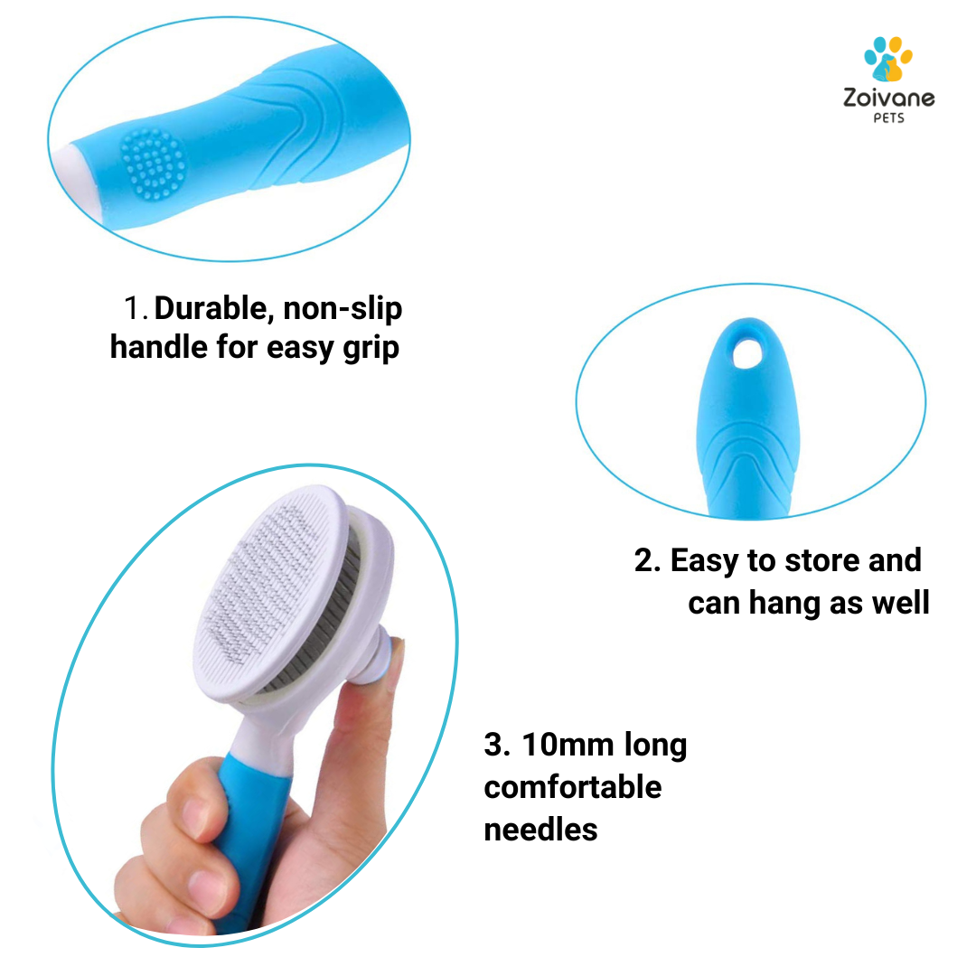 Zoivane Self Cleaning Slicker Comb for Dogs and Cats (Blue)